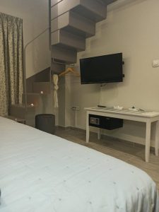 Απολαύστε τη διαμονή σας στην junior κλιματιζόμενη μεζονέτα με πανοραμική θέα στη θάλασσα που μπορεί να φιλοξενήσει έως 3 επισκέπτες. Διαθέτει ένα μεγάλο διπλό κρεβάτι στο πάνω επίπεδο και ένα μονό κρεβάτι στο κάτω επίπεδο με αντιαλλεργικά και ορθοπεδικά στρώματα. Είναι διακοσμημένη μίνιμαλ, ιδανική για ξεκούραση και ηρεμία.  Πρόκειται για μια πολυτελή δίχωρη μεζονέτα, βρίσκεται στον 1ο όροφο. Αποτελείται από δύο επίπεδα που ενώνονται με εσωτερική σκάλα. Διαθέτει μπάνιο με ντουζ και σύστημα βροχής.