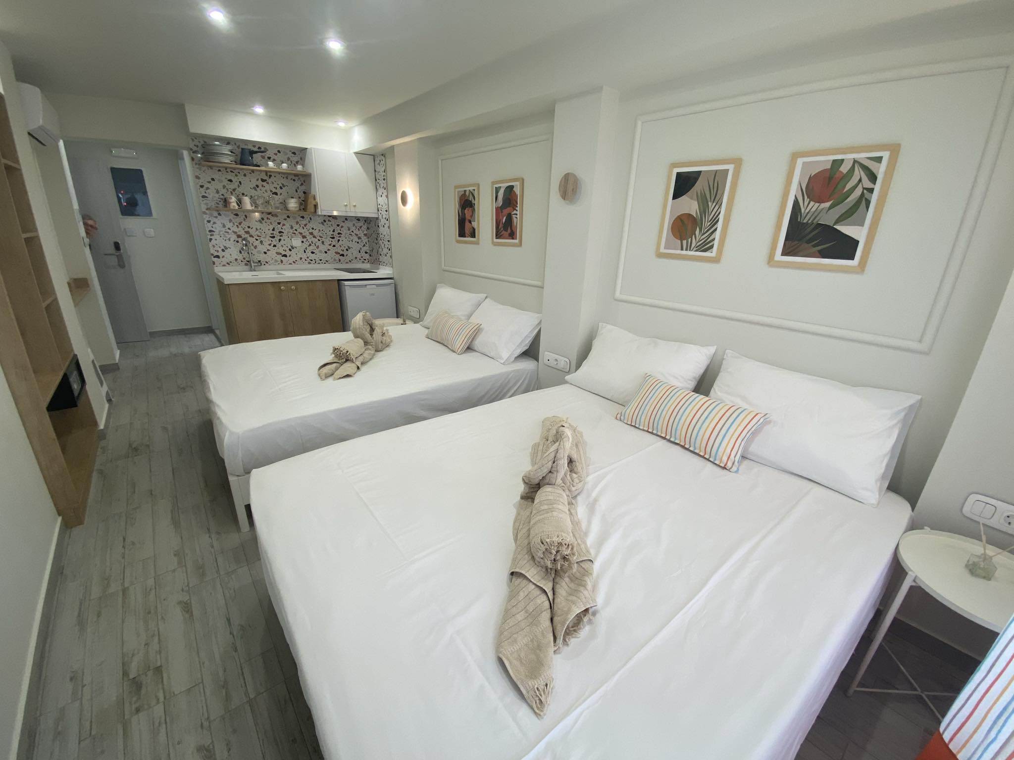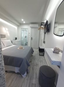 To στούντιο προσφέρει χαλάρωση και άνεση με τη δυνατότητα φιλοξενίας μιας οικογένειας με ένα ή δύο παιδιά. Διαθέτει δύο διπλά κρεβάτια με αντιαλλεργικό και ορθοπεδικό στρώμα. Η μίνιμαλ και ταυτόχρονα κομψή διακόσμηση του προσφέρει πολυτελή διαμονή σε προσιτή τιμή. H υπερυψωμένη ιδιωτική βεράντα προσφέρει εκπληκτική θέα στη θάλασσα. Διαθέτει μπάνιο με ντουζ και σύστημα βροχής.